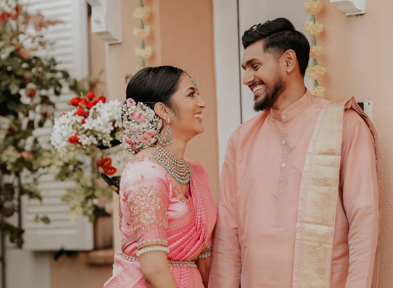 Capturing love in rich cultural hues.